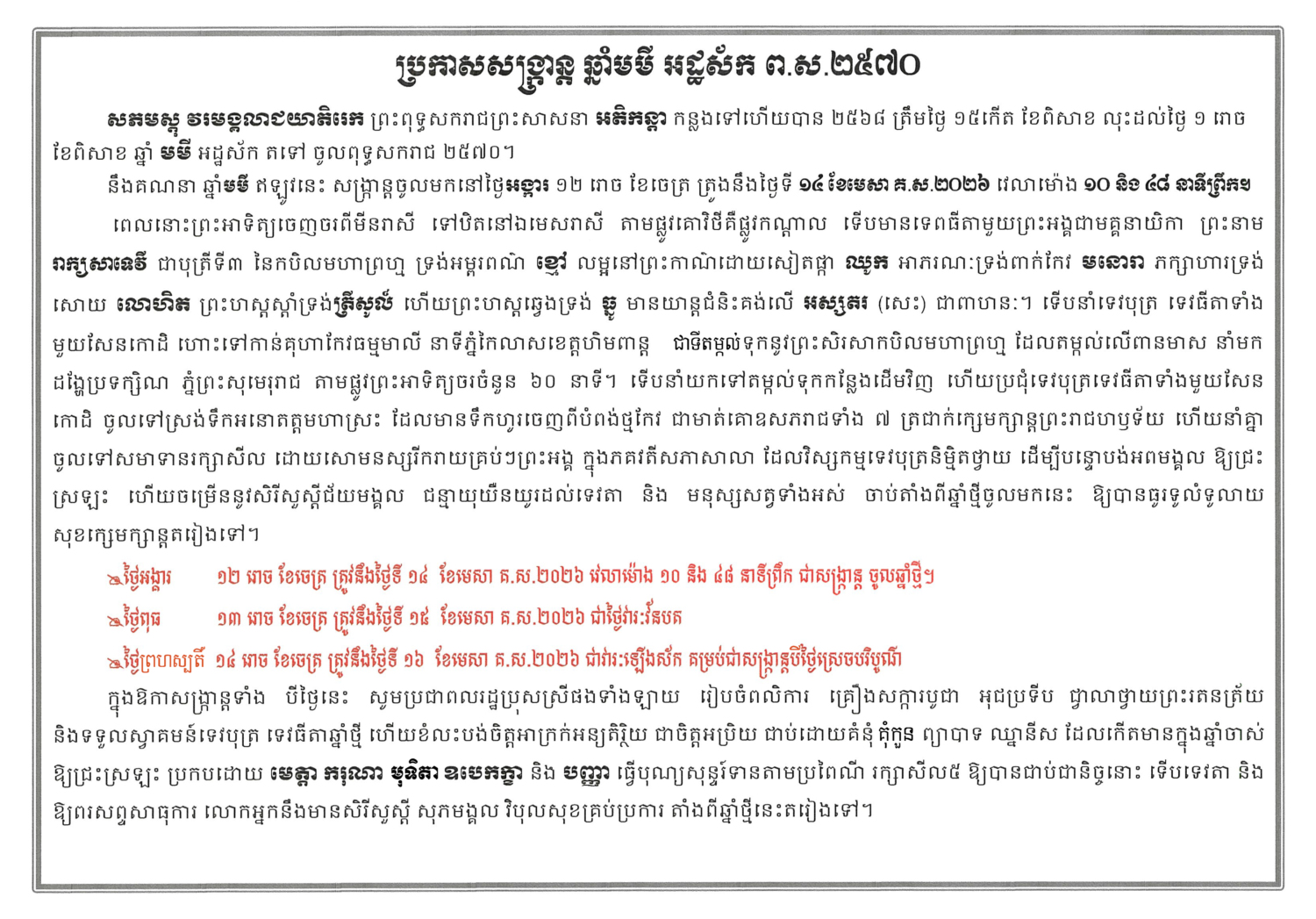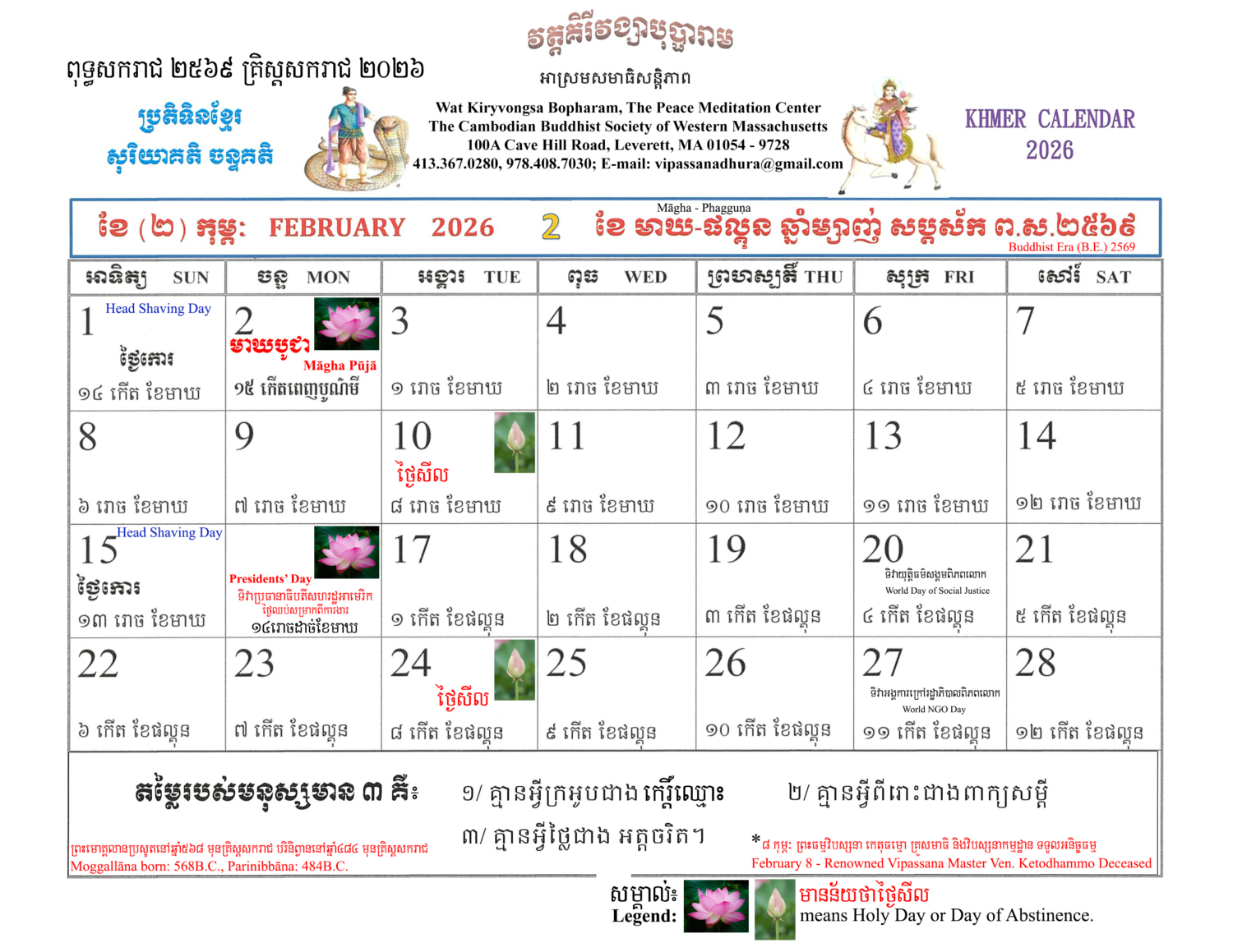 Download Free PDF: Khmer Lunar Calendar 2570 2026 || ប្រភព៖ ព្រះភិក្ខុ ឥន្ទជោតោ (យើងខ្ញុំព្រះករុណា យើងខ្ញុំបានកែលម្អ និង បន្ថែមនូវព័ត៌មានបន្ដិចបន្ដួច)