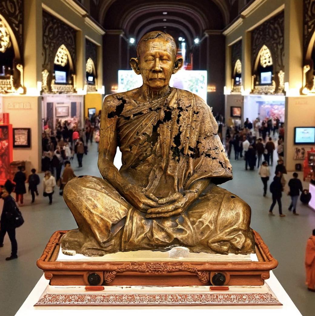 រូបសំណាកសម្ដេចព្រះសង្ឃរាជ ជោតញ្ញាណោ ក្នុងឥរិយាបថគង់ធ្វើសមាធិ និង វិបស្សនាកម្មដ្ឋាន ផលិតអំពីពាន់ ដោយវិចិត្រករ ប៊ិន ឆារ៉ាន់